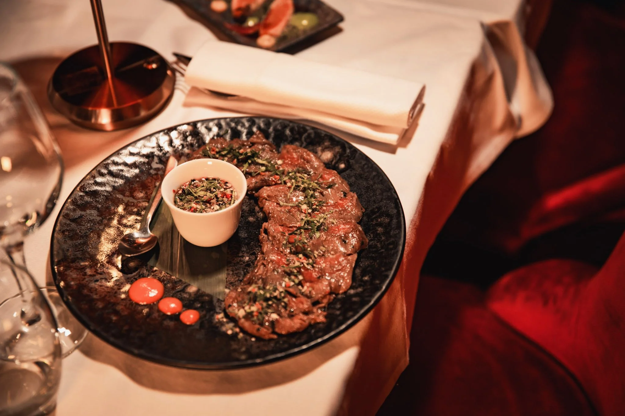 Cuisine raffinée et dîner festif, dans une atmosphère élégante et nocturne